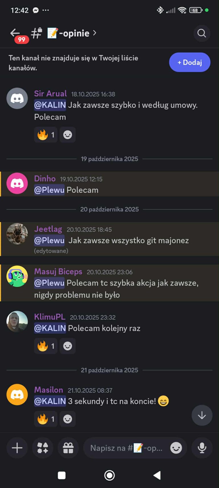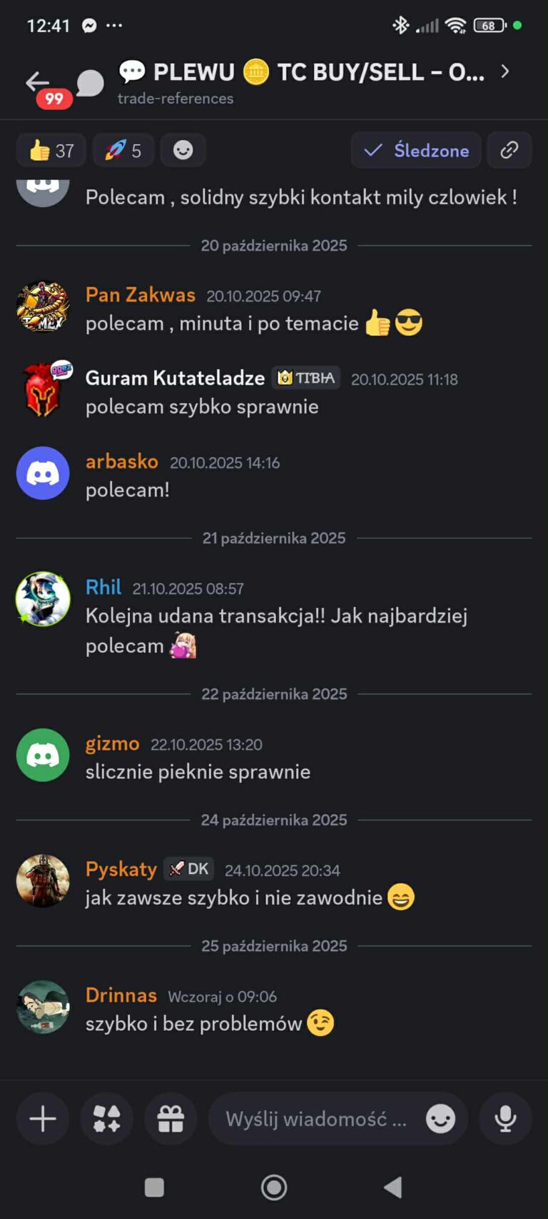 Cześć! W grze i jako sprzedawca jestem znany jako Plewu. Od ponad pół roku zajmuję się sprzedażą Tibia Coinów, zapewniając graczom szybkie i bezpieczne transakcje. Stawiam przede wszystkim na uczciwość, bezpieczeństwo oraz szybkość realizacji — wiem, jak ważne jest, by wszystko przebiegało sprawnie i bez komplikacji. Każda transakcja jest dla mnie tak samo istotna, niezależnie od jej wielkości.